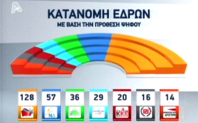 Η εκτίμηση εδρών με βάση την πρόθεση ψήφου από τη δημοσκόπηση είναι η εξής: