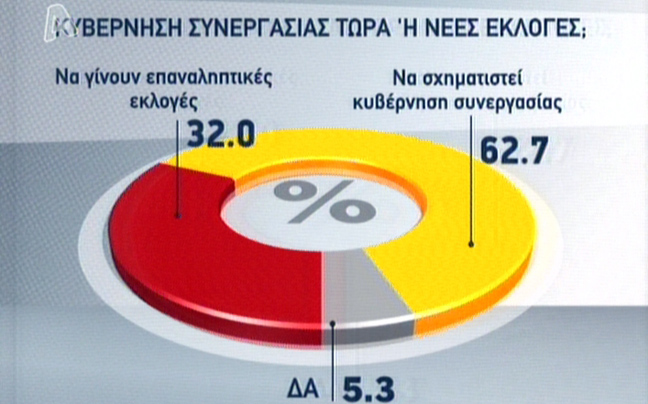 Το 62,7% ζητάει να σχηματιστεί κυβέρνηση συνεργασίας, ενώ το 32% των πολιτών θέλει νέες εκλογές.