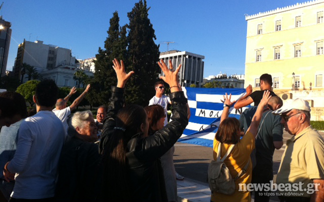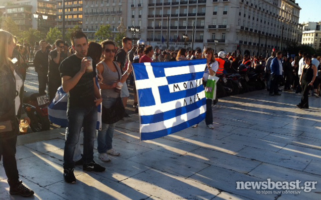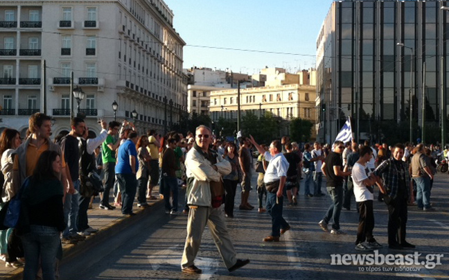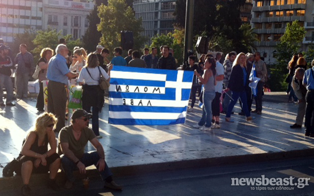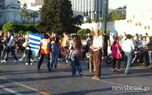 Με τα γνωστά συνθήματα κατά του μνημονίου, οι «Αγανακτισμένοι» επέστρεψαν σήμερα στην πλατεία Συντάγματος. Αυτή την ώρα έχουν συγκεντρωθεί εκεί εκατοντάδες άτομα, ενώ πριν λίγο έκλεισε η λεωφόρος Αμαλίας.