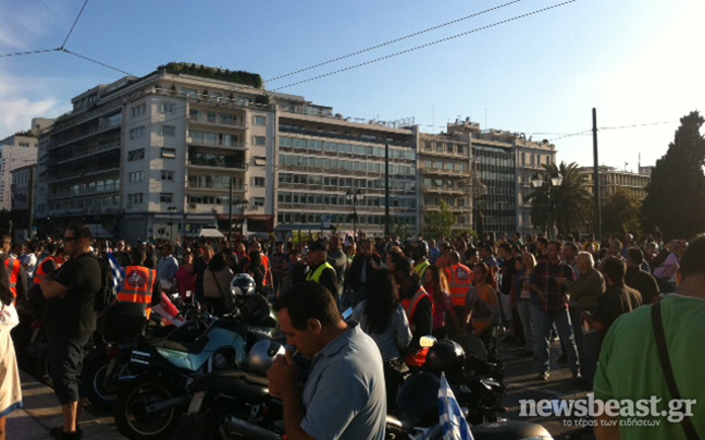 Την αρχή έκανε η μηχανοκίνητη πορεία η οποία πέρασε, χειροκροτήθηκε και σταμάτησε στην Αμαλίας.